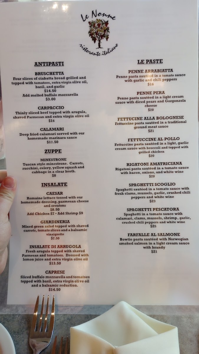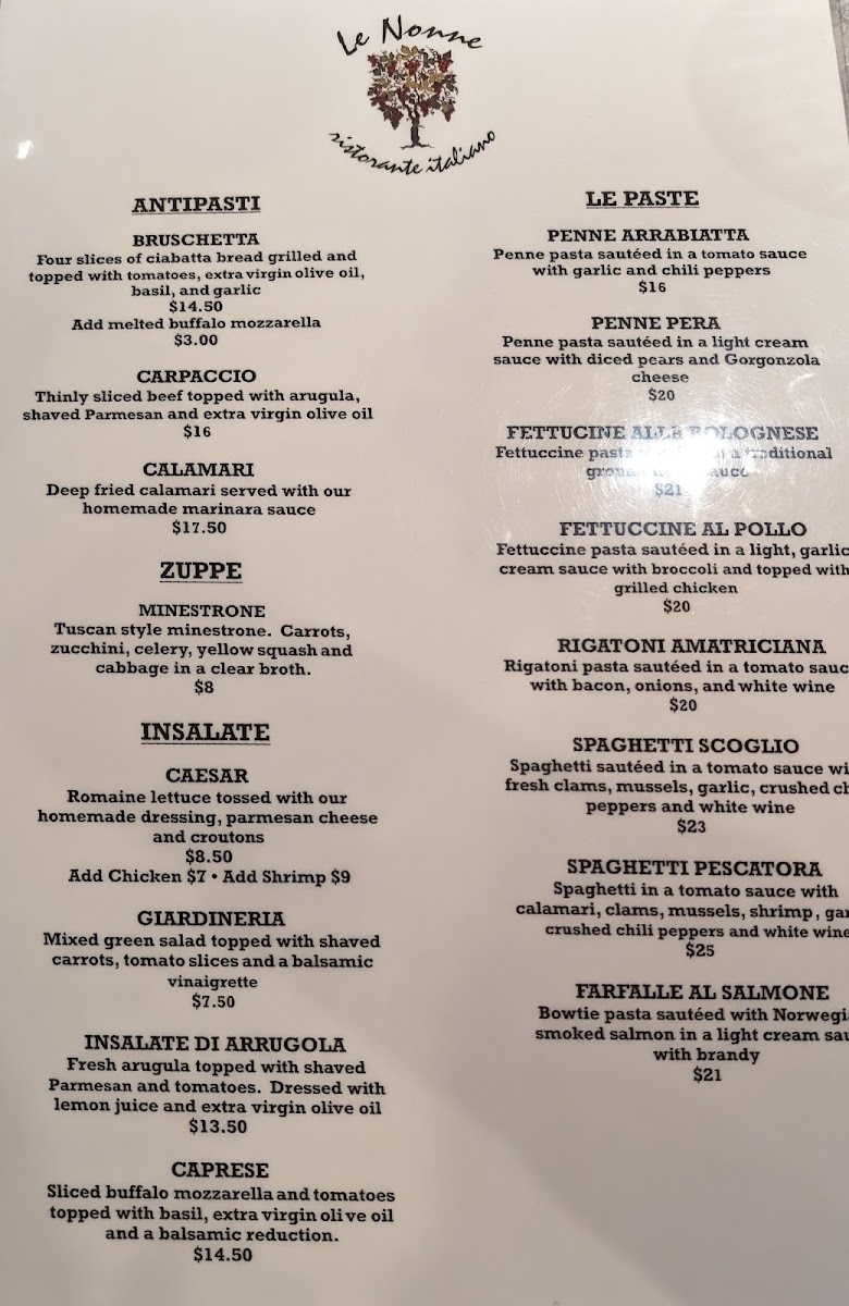 Introducing the menu at Le Nonne, nestled in the heart of Logan, UT, offers a vibrant taste of Italian cuisine that leaves a lasting impression. Their antipasti selection, featuring the exquisite Carpaccio with tender filet mignon and the delectable Crespella Al Salmone, sets the tone for a rich dining experience. The soup offerings, like Pasta E Fagioli, bring warmth with Tuscan flair, while the handmade Gnocchi shines, particularly the Gnocchi Ai Quattro Formaggi, enveloped in a luxurious cheese sauce.
